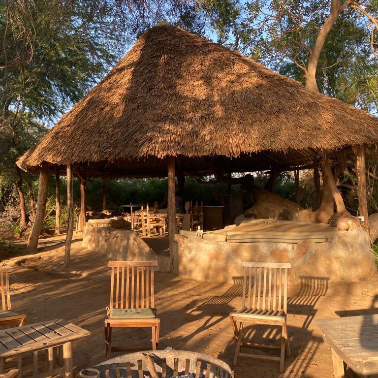 At the very heart of our camp lies the inviting dining and resting area, designed to be the ultimate retreat for our guests. This serene space serves as the perfect spot to unwind during the day, particularly in between exhilarating game drives. With stunning views that overlook the meandering river, you can savor a refreshing beverage, take a leisurely nap, or simply immerse yourself in the tranquil ambiance while observing the diverse wildlife that roams nearby. The atmosphere here is characterized by its quietude and peace, providing an ideal environment to relax, reflect, and rejuvenate amidst the beauty of nature.
